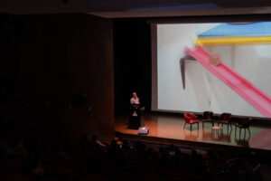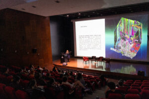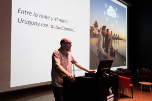La actividad reunió a figuras clave del arte contemporáneo latinoamericano —Angie Bonino (Perú), Juliana Gontijo (Brasil), Jazmín Adler (Argentina) y Brian Mackern (Uruguay)— quienes compartieron obras de sus connacionales y trazaron un mapa de las transformaciones que han atravesado las artes mediales en los últimos quince años. Desde la masificación de Internet y el auge de las redes sociales, hasta los debates sobre crisis ecológica y derechos digitales, el coloquio propuso una mirada disruptivamente esperanzadora sobre el rol del arte en tiempos de cambio.