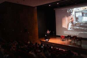 La historiadora del arte Jazmín Adler abrió el encuentro con una invitación a mirar las tecnologías más allá de su utilidad, desmantelar su imagen como herramienta frágil y extractivista, y potenciar su vínculo con la naturaleza desde una mentalidad colaborativa.