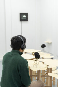 Por otra parte, desarrolla un trabajo objetual y sonoro que surge de procesos participativos con terceros. Se trata del desarrollo de piezas escultóricas o instalativas que soportan sonidos, donde este último, está relacionado al objeto, sacándolo de su cualidad de objeto inerte para vivir a través del sonido puesto sobre el objeto. En este campo, también trabaja con la experiencia de terceros en torno a situaciones de comunicación o incomunicación, donde la voz de los participantes juega un rol fundamental.